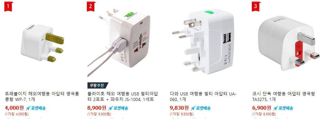 한 곳에서 여러개 충전을 위해 4~6구멀티탭 하나 정도는 챙겨가세요. 삼구 콘텐트 사용하기에 변압콘센트