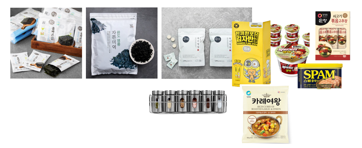 거기 가서 사도 되지만 은근히 사기 번거롭고 입맛에 안맞을 수 있으니 소금, 설탕, 참기름, 고추장 등 조미료 챙겨가는 것을 추천합니다. 도착 후 적응기간동안 먹을 목적으로 준비, 참치, 스팸, 김치,라면, 한알 육수, 다진마늘, 참치액젓, 카레, 쌀 등으로 준비합니다.