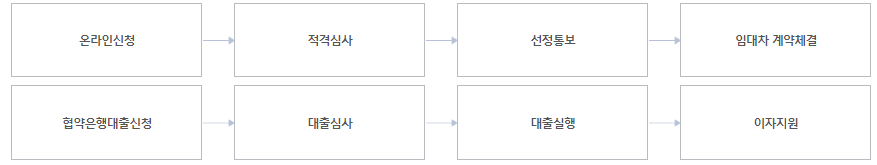 지원금 신청시 처리 절차는 위의 표와 같습니다. 온라인으로 신청 후 적합여부를 심사하여 선정된 분에게 결과를 통보합니다. 이후 임대차 계약을 채결하고 계약 채결 후에는 협약 은행인 농협 성남시지부에서 대출을 신청하여 대출을 받으며 그에 대한 이자를 성남시에서 지원 받을 수 있습니다. 공고문을 참고해주세요.