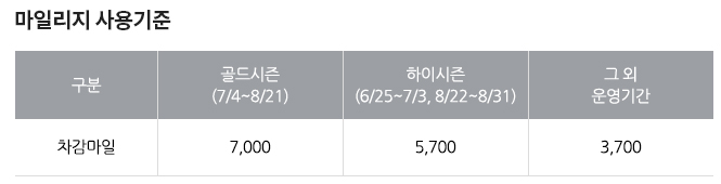 - 본인 마일리지만 사용이 가능하며 가족합산 및 양도는 불가합니다.