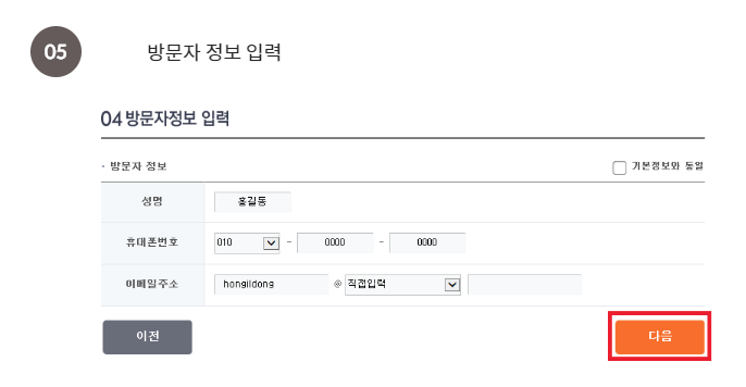 5) 방문자 정보 입력