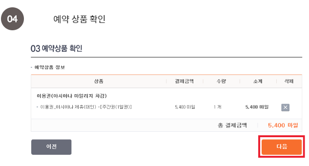 4) 사용 마일리지 선택