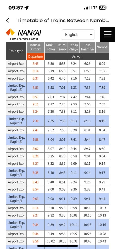 정확한 배차표는 난카이 공식 홈페이지에서 확인할 수 있습니다.