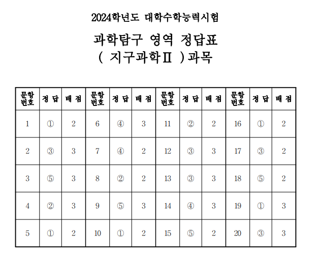2024 수능 지구과학2 답안지