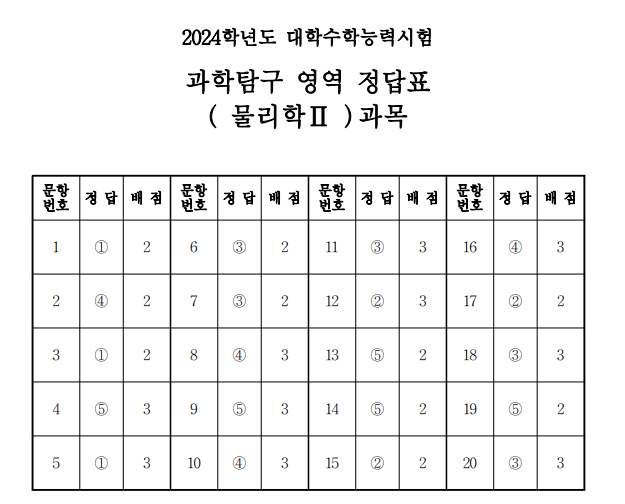 2024 수능 물리2 답안지