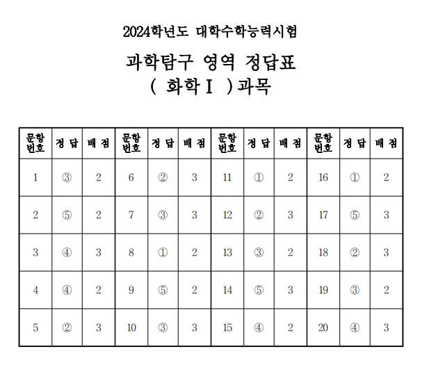 2024 수능 화학1 답안지