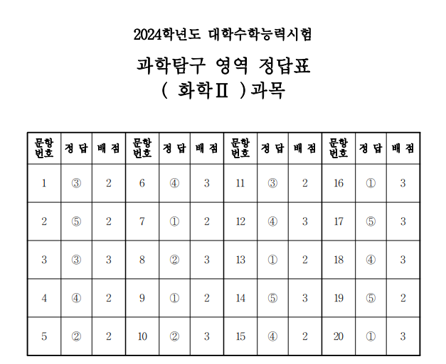 2024 수능 화학2 답안지