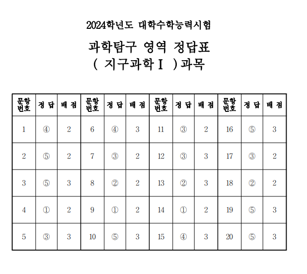 2024 수능 지구과학1 답안지